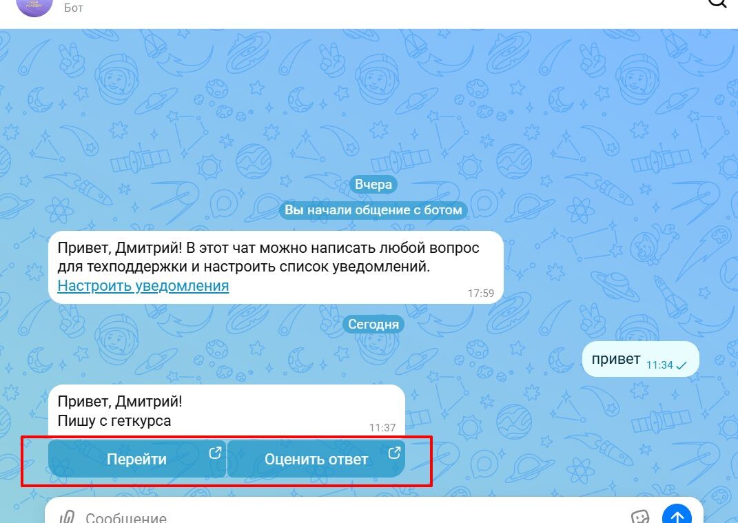 Да, эти кнопки - стандартные, добавляются только к ответам сотрудника для ученика. Ученик может перейти к сообщению из мессенджера на Геткурс, а также оценить ответ сотрудника (в интерфейсе Геткурса https://disk.yandex.ru/i/7-o69Bh6_mp3-g этот функционал отображается в виде звезд под ответом сотрудника). Подробнее об оценке ответов сотрудника вы можете прочитать в статье https://getcourse.ru/blog/1040126#otsenki .